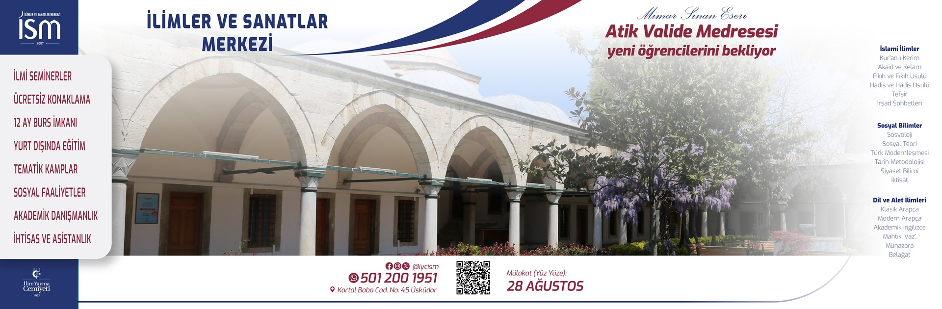 Duyuru İSM ve Nibras İşbirliği ile Düzenlenen “Atik Valide Yaz Okulu” 10-23 Ağustos Tarihleri Arasında Atik Valide Medresesinde Gerçekleştirilecektir