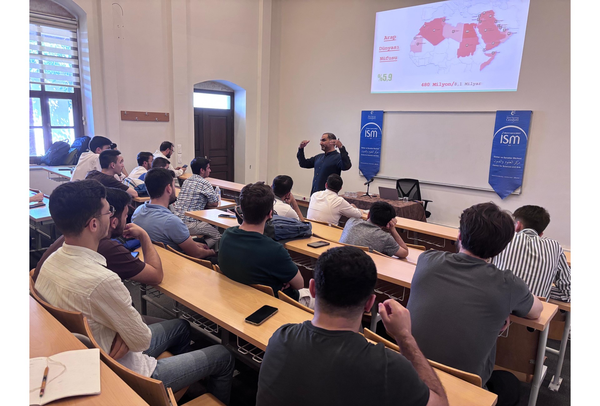 2025 Yılı Yaz Dönemi kapsamında düzenlenen İkindi Sohbetleri’nin bu haftaki konuğu, İstanbul 29 Mayıs Üniversitesi Yabancı Diller Yüksekokulu Müdürü Dr. İbrahim Helalşah oldu. “Arap Dünyasını Anlamak” başlıklı sunumunda Dr. Helalşah, Arap dünyasının coğrafi dağılımı, nüfus yapısı, doğal kaynakları ve kültürel çeşitliliği üzerine zihin açıcı bilgiler paylaştı.